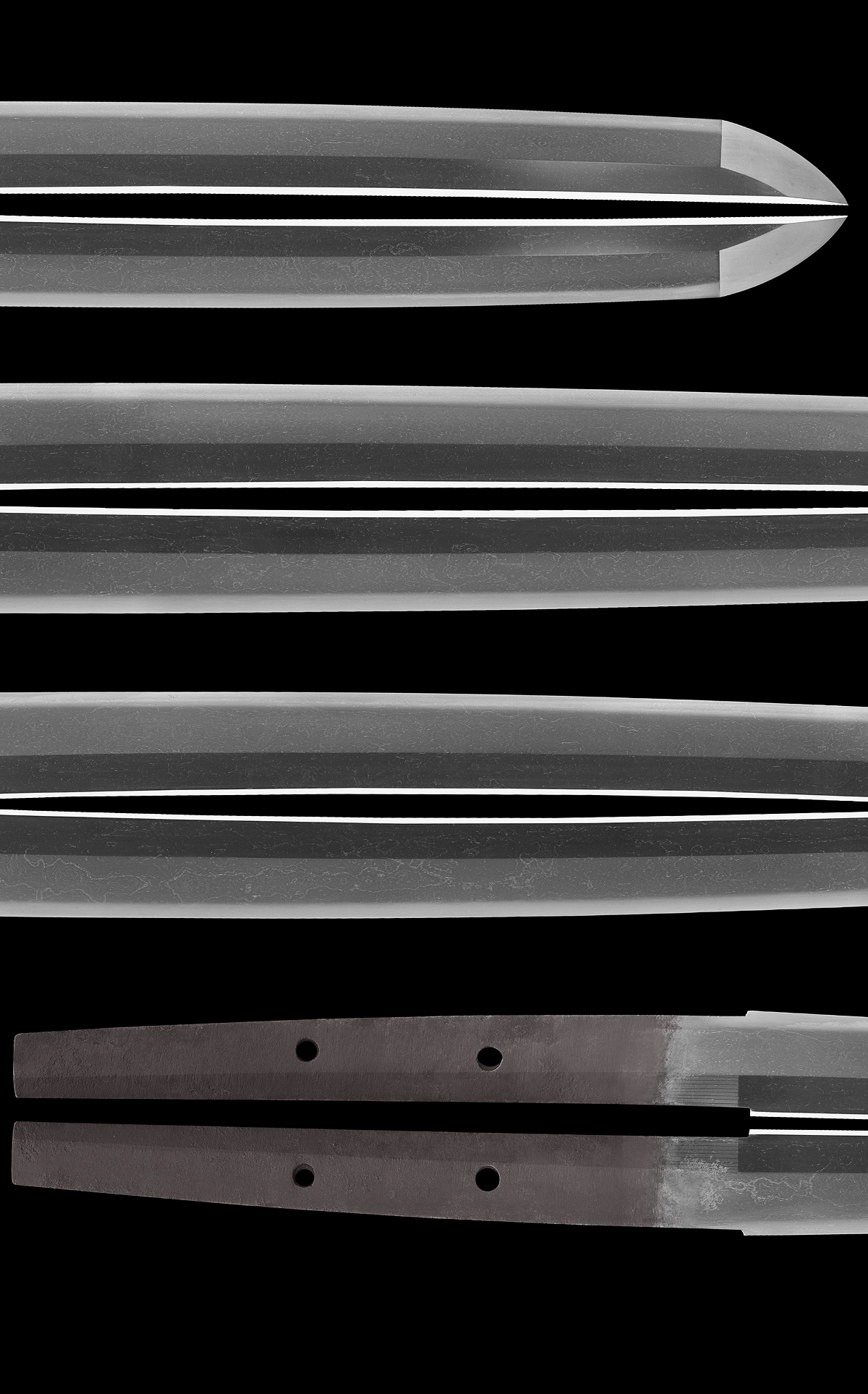 Jitetsu :Itame hada and Mokume hada mix well grained tight Jigane and chikei.